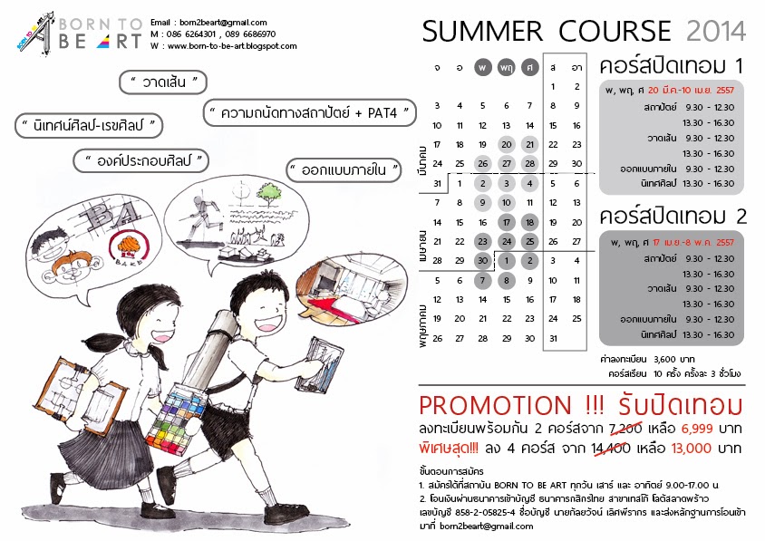 BORN-TO-BE-ART โรงเรียนสอนศิลปะและพื้นฐาน ติวสถาปัตย์ สำหรับผู้ตั้งใจสอบเข้ามหาวิทยาลัยชั้นนำทางด้าน สถาปัตยกรรม มัณฑนศิลป์ จิตกรรม นิเทศศิลป์ ฯลฯ สอนการวาดรูปขั้นพื้นฐานตลอดจนขั้นสูง โดยทีมอาจารย์สถาปนิกและจิตกรตัวจริง มีประสบป์การณ์ด้านการสอนกว่า10ปี จบจากมหาวิทยาลัยชั้นนำของประเทศและมีผลงานที่ได้รับการยอมรับระดับโลก